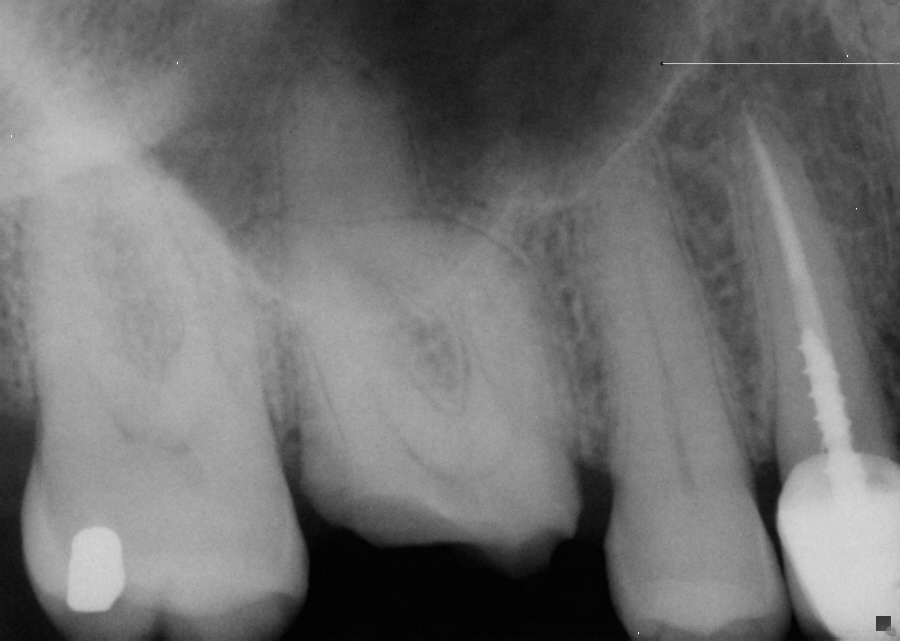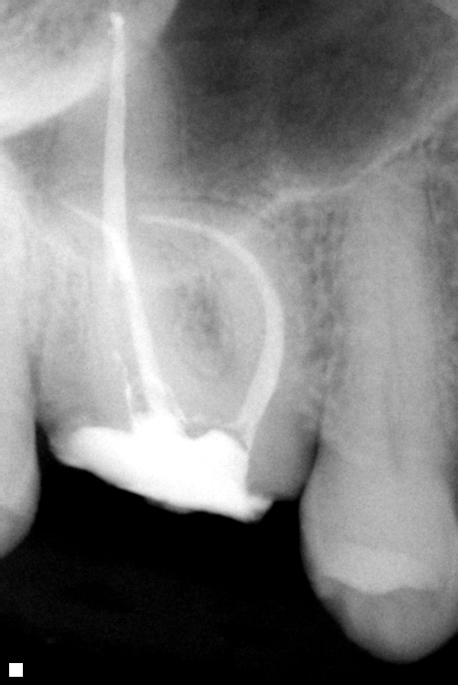 This is a root canal for a first maxillary molar (tooth #3) where an old crown (over 10 year old crown) fell out due to decay around the margin. As you can see there was a very curved canal which required additional time for proper root canal treatment. This tooth will now be restored with a post and crown allowing the patient to keep the tooth.