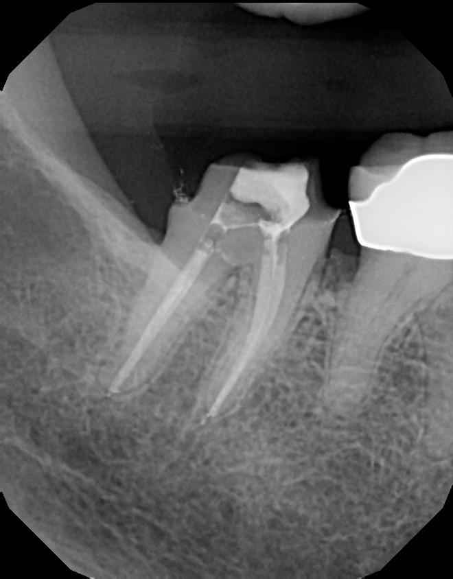 Below are pictures of a recent case of mine. This 10+ year old crown that developed decay (cavity) around the margin where tooth meets crown. Always pay attention to sensitivity around fillings and crowns and advise your dentist when symptoms develop, so you can stay away from roots canals. In this particular case, root canal was required because the decay reached too close to the nerve.